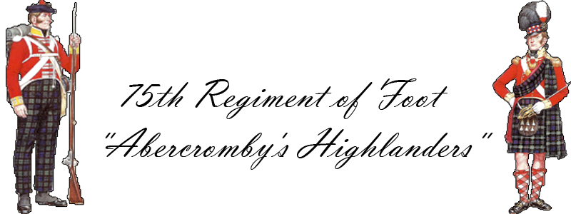 The 75th (Highland) Regiment of Foot was raised in the county of Stirling in 1787, and embodied at Stirling in June 1788. Their Colonel was Robert Abercromby of Tullibody, hence the Regiment's familiar title of 'Abercrombie's Highlanders.' The Regiment was soon dispatched to India, where they fought in the Mysore campaign of 1799 and at Seringapatam, both in 1792 and 1799. The Regiment, much depleted, returned home in 1806, in 1809 their title was changed to the 75th Regiment of Foot, and again in 1862, to the 75th (Stirlingshire) Regiment. In 1881, they were linked with the 92nd (Gordon Highlanders) Regiment of Foot to form the 1st Battallion of The Gordon Highlanders.