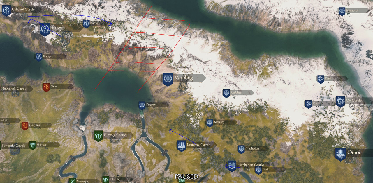 - Nevyansk Castle needs to be completely relocated. There's a Battanian castle that's bordering Sturgian lands nearby, just switch the places of these two castles with eachother so Nevyansk castle is closer to Mazhadan castle.